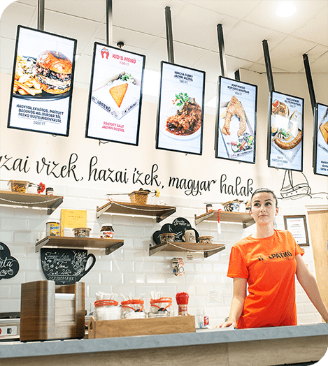 A digitális menüboard a korszerű vendéglátás fontos eszköze. Olyan nagy felbontású kijelzők sora, amelyek dinamikus vizuális élményt és interaktív lehetőségeket kínálnak éttermek, kávézók, büfékocsik és drive-thru egységek számára. A hagyományos nyomtatott étlapokkal szemben sokkal látványosabb, rugalmasabb és gazdaságosabb megoldást nyújt.